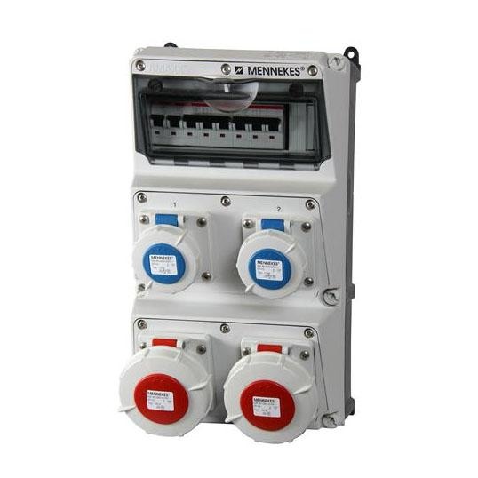 CAJA COMBINADA IP67 2 TOMACORRIENTES 32A 3P+N+T 400V CON 2 INTERRUPTORES TERMOMAGNÉTICOS 3X32A + 4 TOMACORRIENTES SCHUKO